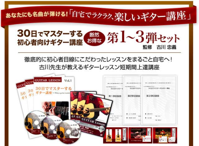 上記はその先生が動画を通じてギターの基本や弾き方をレッスンしてくれる、大人気のDVD講座です。
